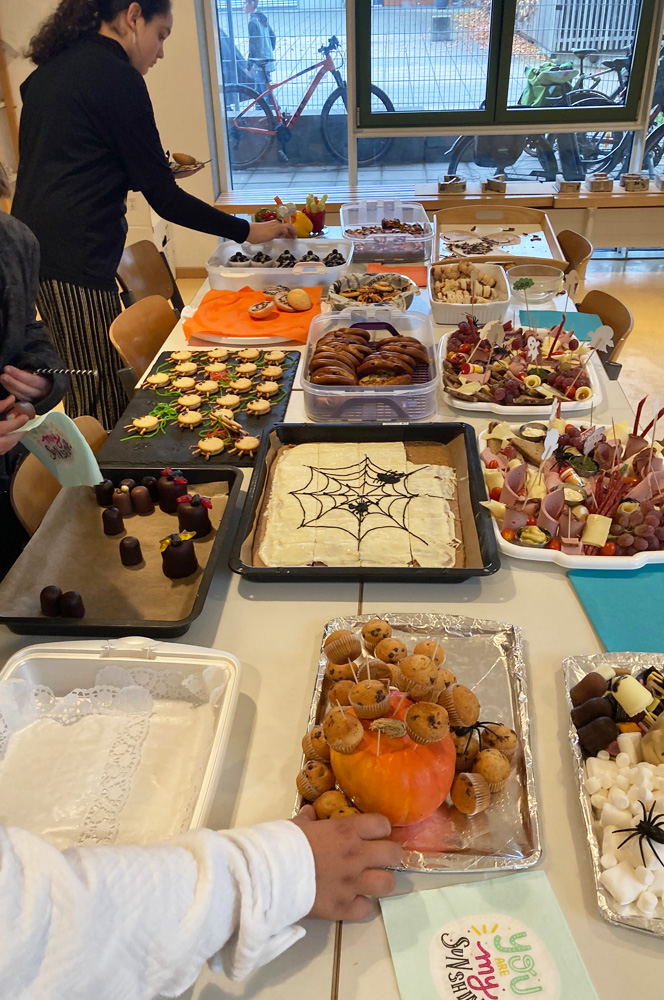 Von kleinen Geistern bis hin zu mutigen Vampiren war alles vertreten. Selbst beeindruckende Dinosaurier mischten sich unter die Läufer. Wer sich wohl unter diesen Kostümen versteckt hat? Das Halloween-Buffet zur Stärkung der Läufer:innen rundete die schaurige Atmosphäre ab und sorgte für eine einzigartige Stimmung.