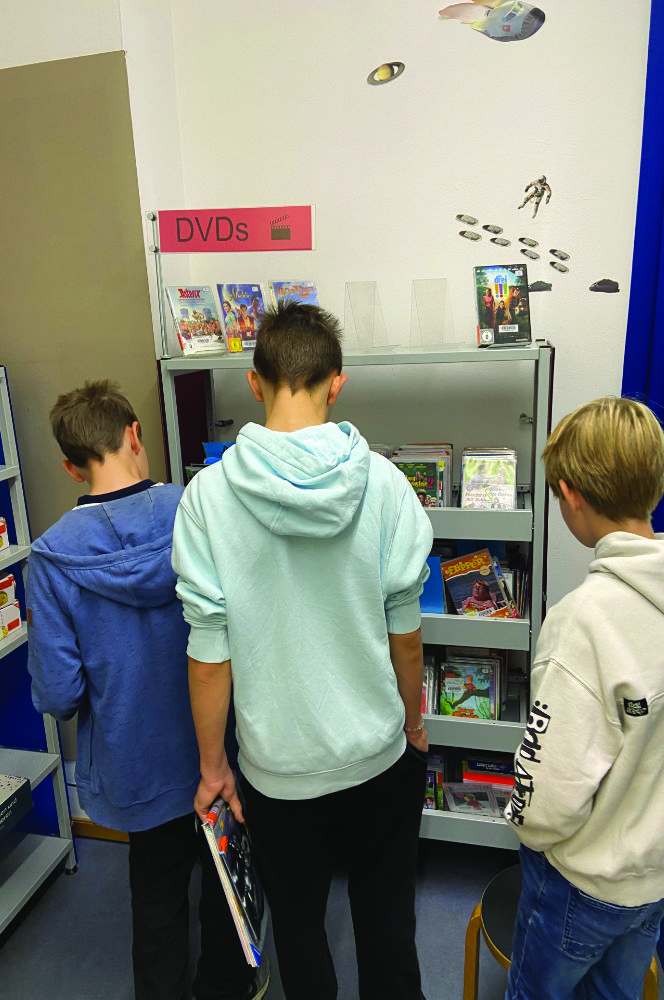 Nachdem alle Aufträge erledigt und die Götter bestens versorgt waren, blieb noch reichlich Zeit zum Stöbern und Entdecken. Zahlreiche neue und spannende Bücher liehen sich die Schüler:innen direkt aus und auch Lehrkraft Nadine Höffler konnte man am Ende des Besuch an der Ausleihtheke wiederfinden. Nun sind die ersten kuscheligen Herbst-Lese-Momente sicher. Vielen Dank an das Team der Stadtbücherei Ingolstadt!