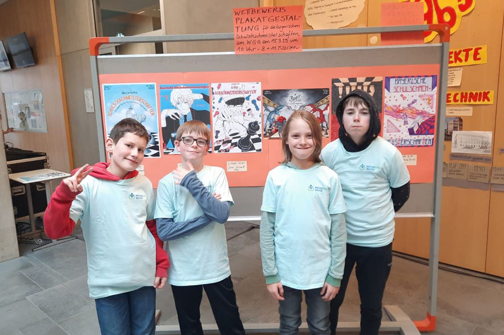 Die jungen Schachtalente der WK4-Klasse lassen sich gut mit einem kleinen gallischen Dorf vergleichen, das gegen ein übermächtiges Imperium kämpft. Die ungleiche Ausgangslage ergibt sich durch eine vergleichsweise kleine Schülerzahl. Andere Schulen stehen dem mit einer deutlich größeren Auswahl an starken Spielern gegenüber. Nachdem das Schachteam der WK IV durch seine außerordentliche Leistung, die oberbayerische Schulschachmeisterschaft für sich entschieden hatte, durften sich die fünf Jungen vergangenen Samstag in dem fordernden, sehr starken Teilnehmerfeld mit den besten Schulteams aus Bayern messen. Hier erreichten sie den neunten Platz und erzielten noch ein Unentschieden in der letzten Runde.