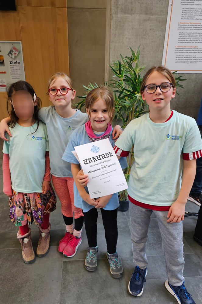 Auch die Montessorischule Ingolstadt nahm mit zwei Teams, dem Grundschulteam Mädchen und dem Team der WK IV (Jahrgänge 2012 und jünger), an dem hart umkämpften Schachturnier teil.