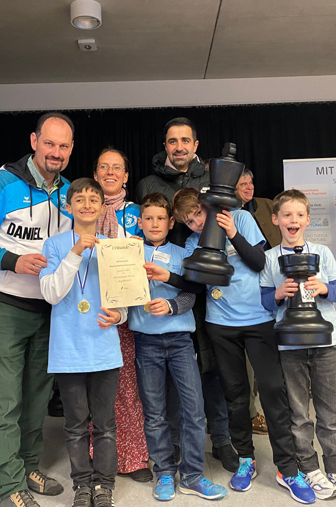 Der Preis ist nicht nur eine verdiente Auszeichnung für die beteiligten Schüler:innen, sondern auch ein großer Erfolg für die Schach-AG der Montessorischule. Insgesamt drei Gruppen treffen sich jeden zweiten Dienstag für eine Stunde am Nachmittag. “Ein ganz besonderer Dank geht an die drei Eltern: Manja Jahnke, Daniel Navarro Gevers und Oliver Rous. Sie haben vor über vier Jahren eine Schach-AG an der Montessorischule etabliert, in der sie ihre große Leidenschaft für das Schachspiel Kindern und Jugendlichen weitergeben”, so Hortleitung Michaela Adlkofer. Mittlerweile gibt es drei Gruppen, in denen Primar- und Sekundarschüler:innen regelmäßig ihre Spielfähigkeiten trainieren und verbessern.