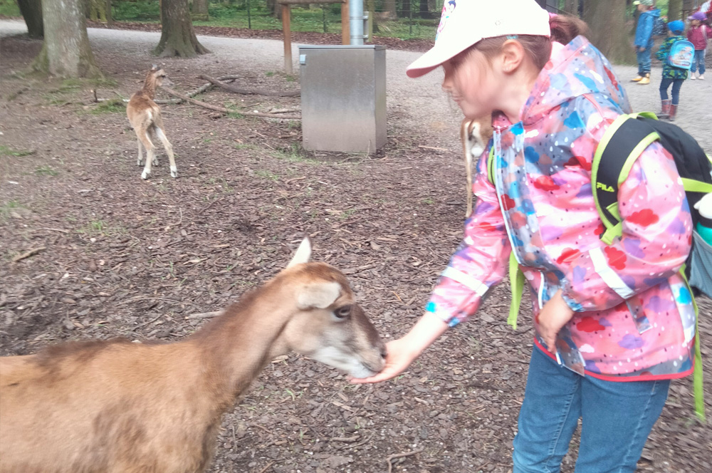 Denn der Wildpark bot auch unseren kleinen Entdecker:innen eine beeindruckende Vielfalt an Tieren, darunter große Bären, neugierige Wildschweine, Wölfe, verspielte Ziegen und prächtige Pfauen. Besonders aufregend fanden die Kinder das freilaufendes Dam- und Muffelwild, das sie sogar füttern durften.